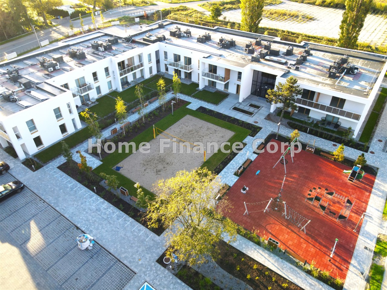 Dla mieszkańców powstał plac zabaw, który zapewni dzieciom niezapomniane chwile radości, boisko do siatkówki oraz przestrzeń rekreacyjna, gdzie można aktywnie spędzać czas na świeżym powietrzu.